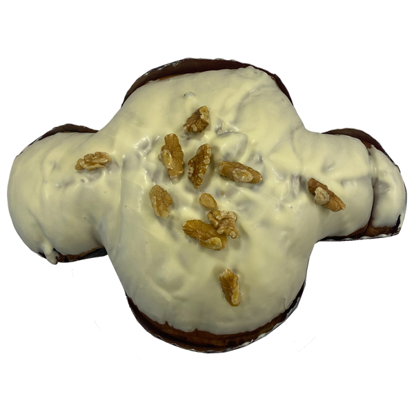 Ingredienti: farina di frumento tipo 0, burro, noci 6%, fichi 20%, zucchero, cioccolato bianco, acqua, tuorli, lievito naturale, latte scremato in polvere, glutine, miele, emulsionante: degli acidi grassi (e471).