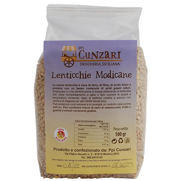 Ingredienti: 100% lenticchie siciliane varietà Modicana.