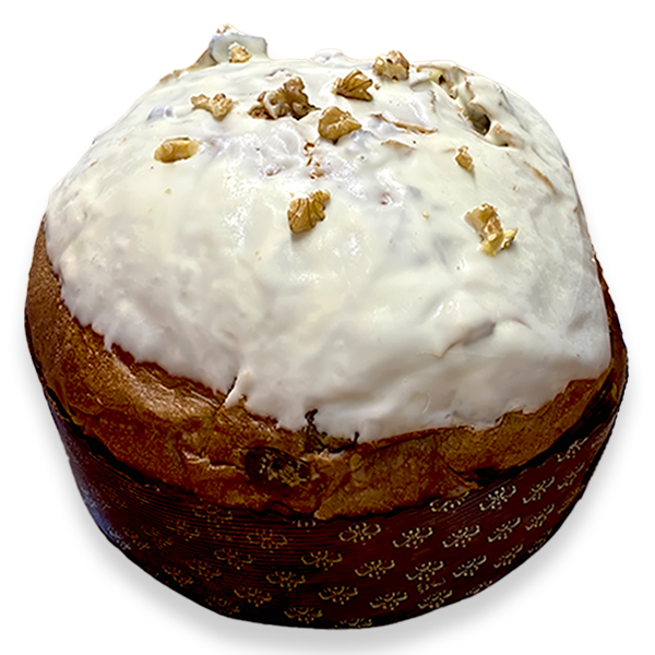 Ingredienti: farina di frumento tipo 0, burro, noci 6%, fichi 20%, zucchero, cioccolato bianco, acqua, tuorli, lievito naturale, latte scremato in polvere, glutine, miele, emulsionante: degli acidi grassi (e471).